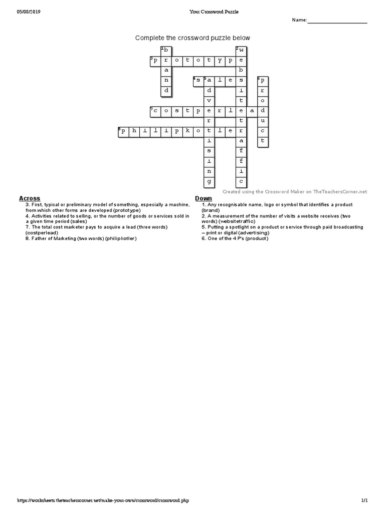 Created using theteacherscorner.net crossword maker).